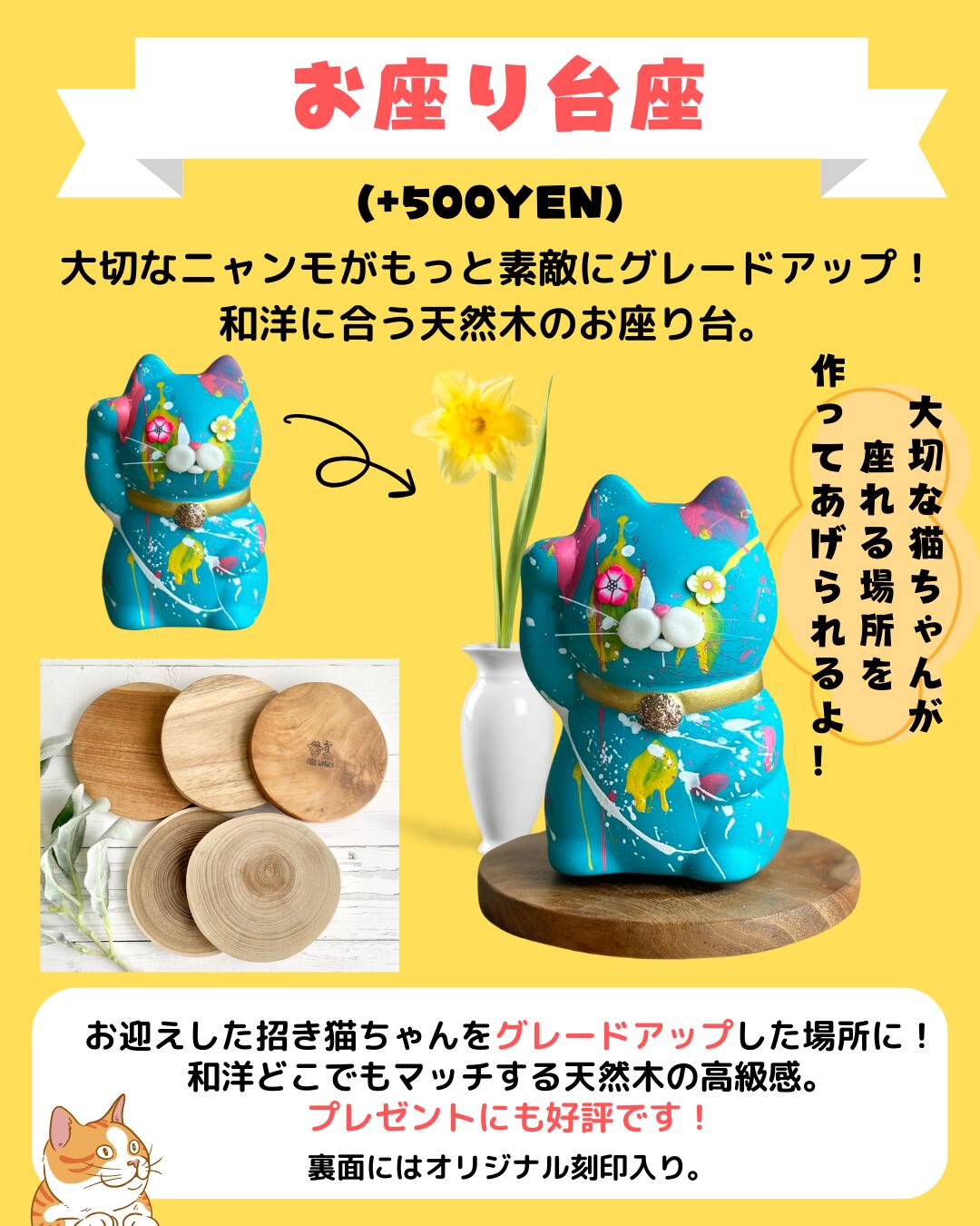 大切な招き猫だから。ニャンモが座れるお座り土台をご用意しています。