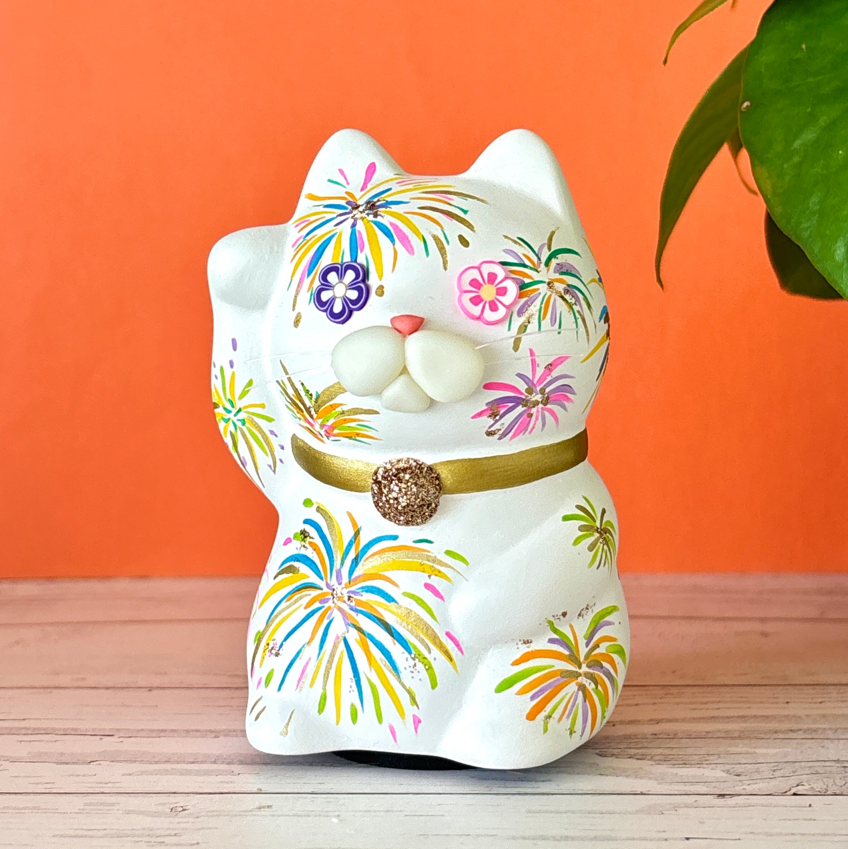 心配事は空想ニャ!花火ニャンモ白/招き猫