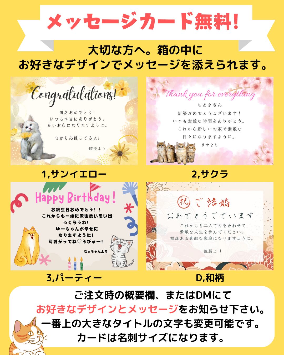 ご希望の柄とメッセージを概要欄にてお知らせください。