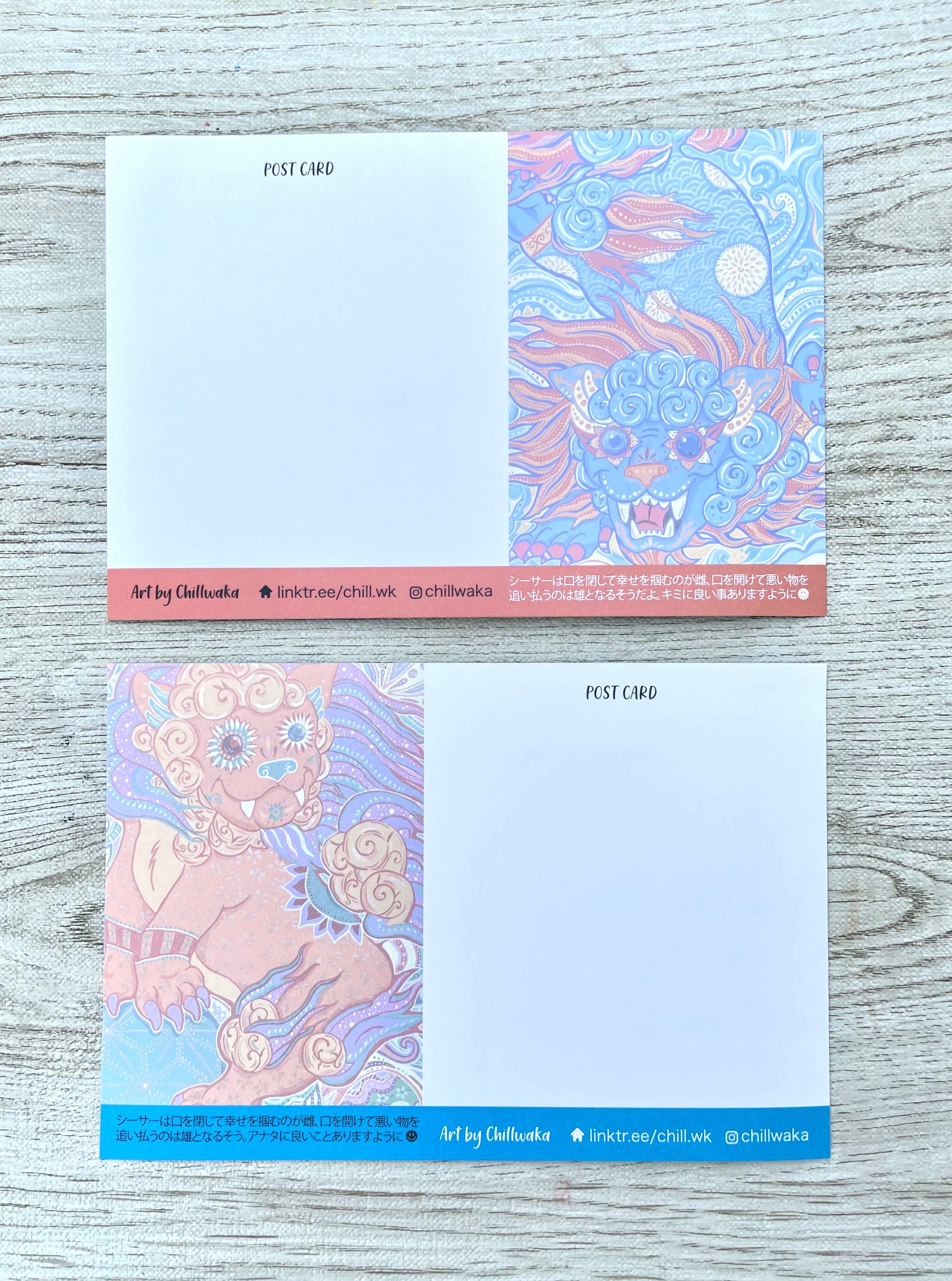 沖縄のシーサーをモデルに、オスメスを描き下ろした渾身の作品。