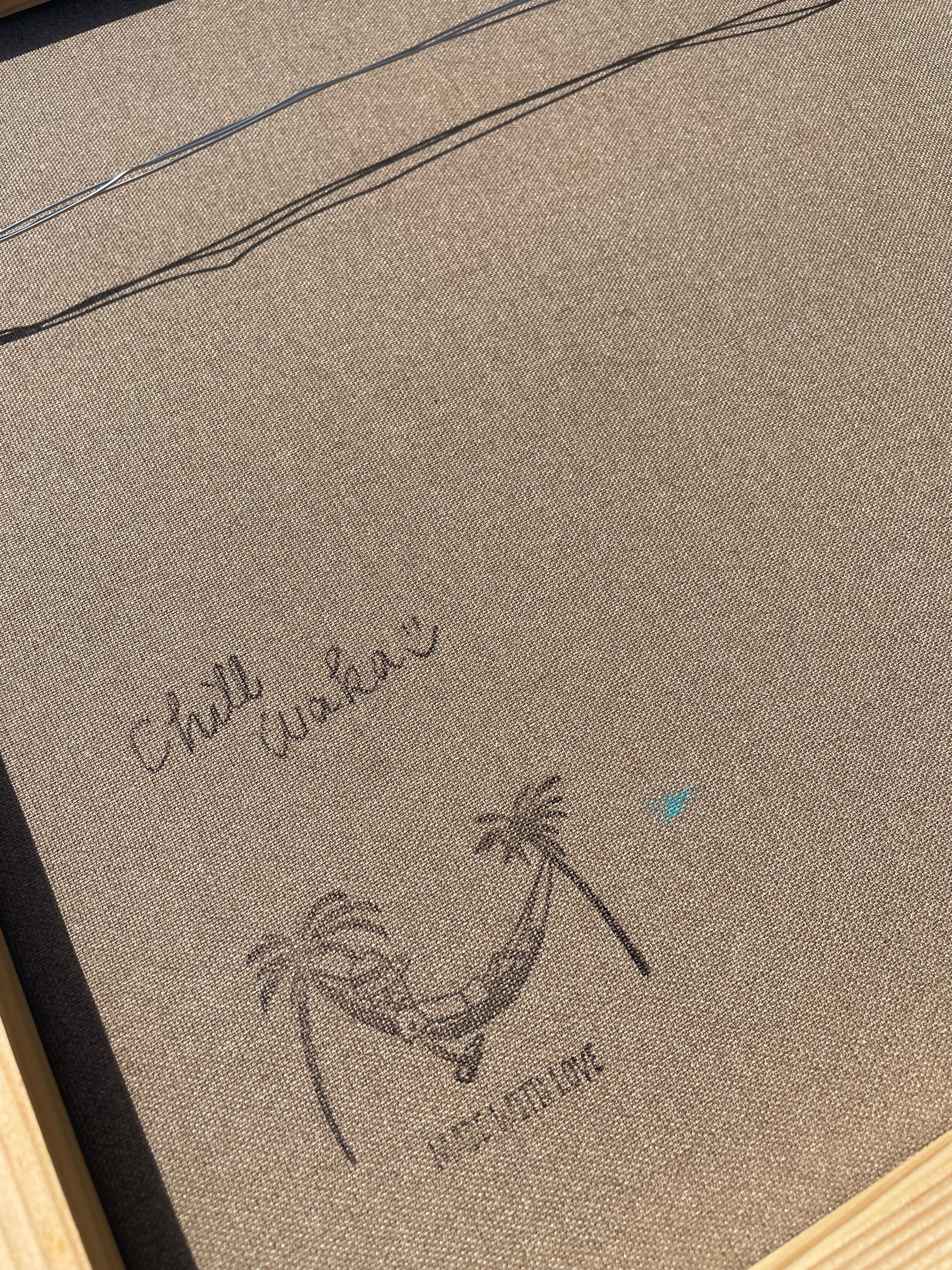 裏側には壁掛け用の紐、オリジナルサインが入ります。