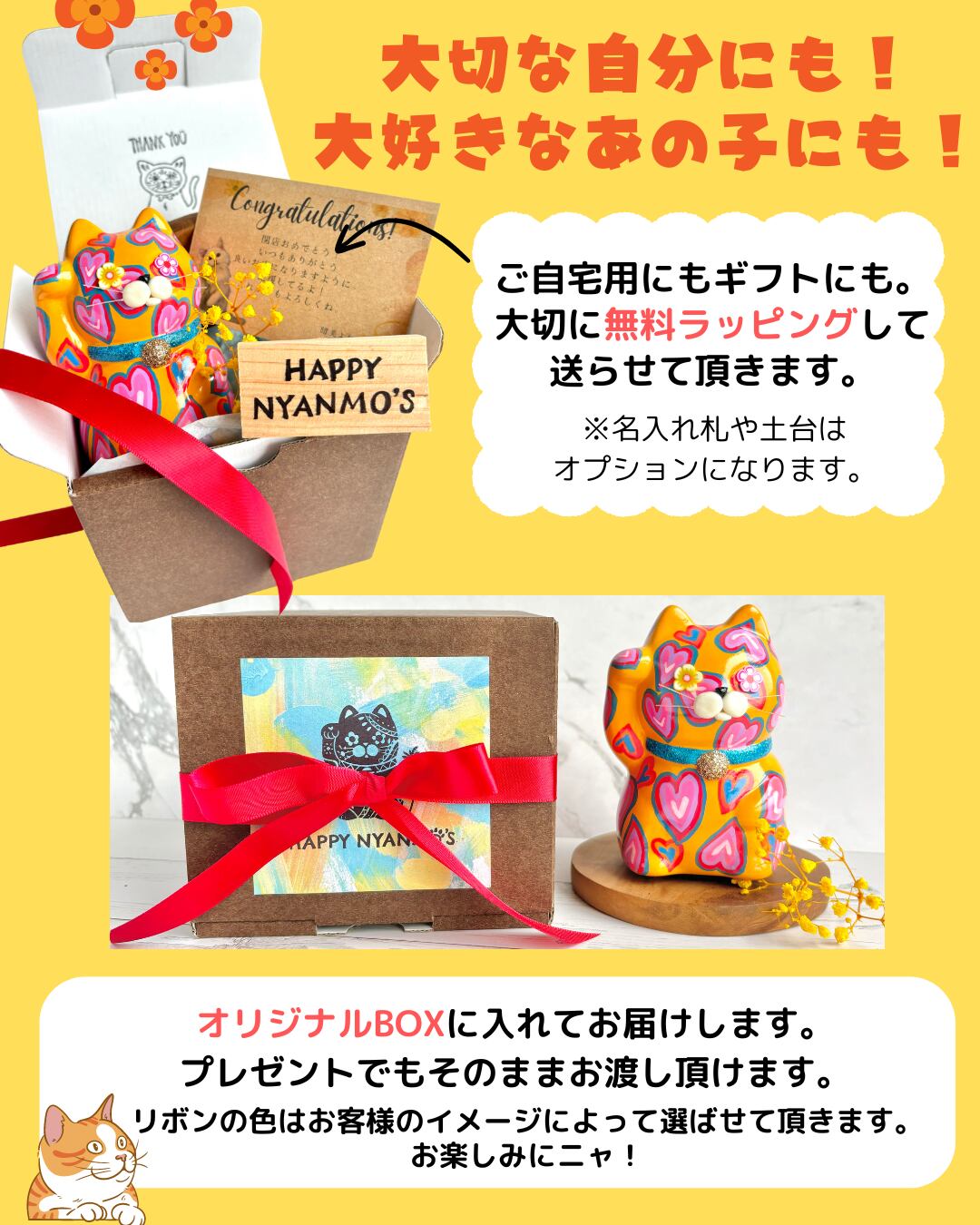 大切な招き猫だから。ニャンモが座れるお座り土台をご用意しています。